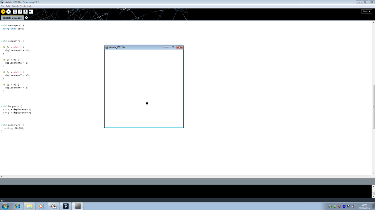 Nous avons commencé le programme ayant au départ un carré noir créé précédemment.