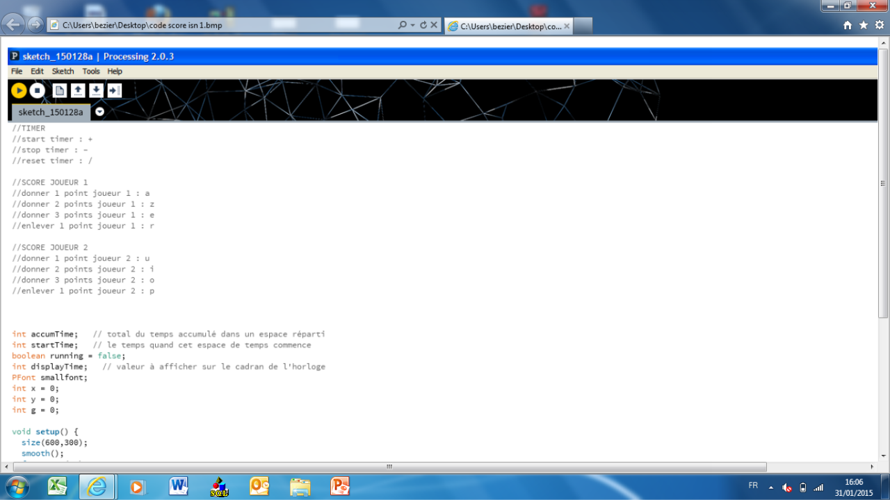 text("pointJA",50,50); //affiche le texte qui réprésente le compteur de point du joueur A